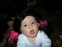 We also discovered that Haley is a bit of a chunk for her age - she's weighing in at approximately 6 lbs 12 oz. If she were to gain the approximate 1/2 lb per week, we could be looking at a BIG girl. The most surprisingly finding was that Haley has some hair...who would have thought? I have been convinced this entire time that she would be a baldy.